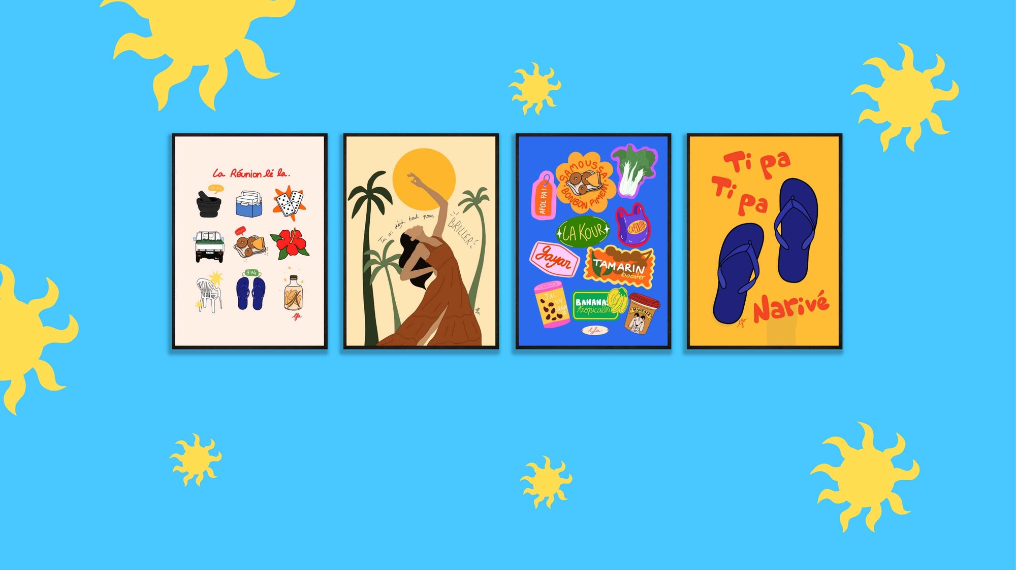 J'ai opté pour l'association de l'affiche Ti Kaz et l'affiche Flamboyant, c'est chaleureux et pétillant, comme notre jolie île de la Réunion. Merci à Ariane pour ces jolies compositions. À très bientôt.